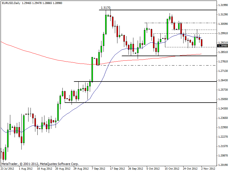 Il peggioramento del sentiment sui mercati ha portato come conseguenza più logica la perdita di valore dell’euro contro le principali valute. Il tasso di cambio euro/dollaro è tornato sottto 1,29, sfiorando nuovamente il supportone di area 1,2880. In caso di perdita decisa di questa key area, il cambio dovrebbe scendere fino a 1,2830 - 1,28 nelle prossime ore, in attesa della pubblicazione dei non-farm payrolls (ore 13,30).