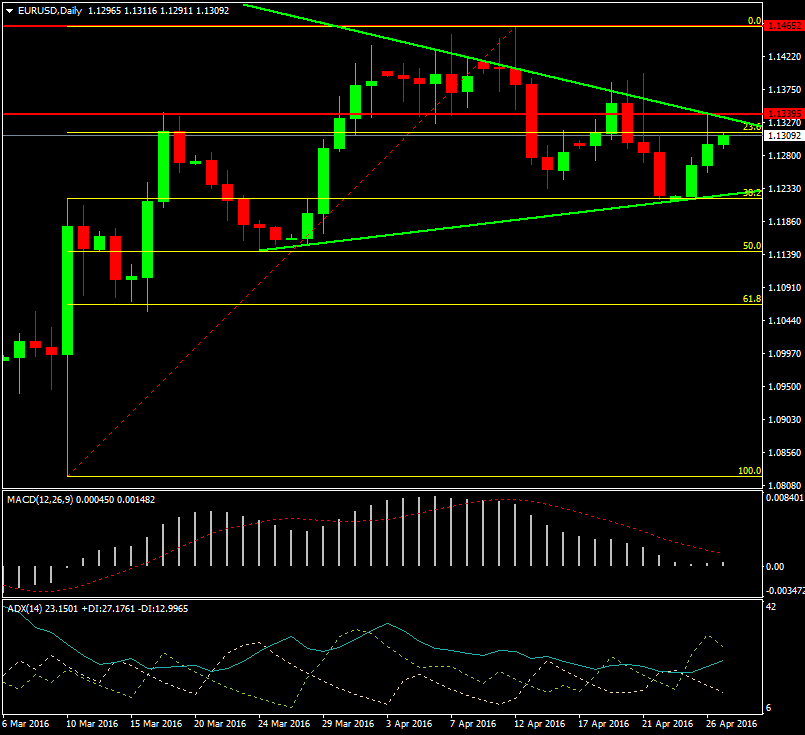 Durante la gioranta di oggi il cambio euro-dollaro dovrebbe rimanere in attesa, aggirandosi tra il 23.6 di Fibonacci e la resistenza a 1,133, confermando il suo orientamento al rialzo.