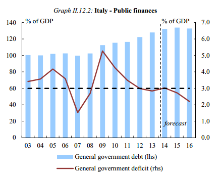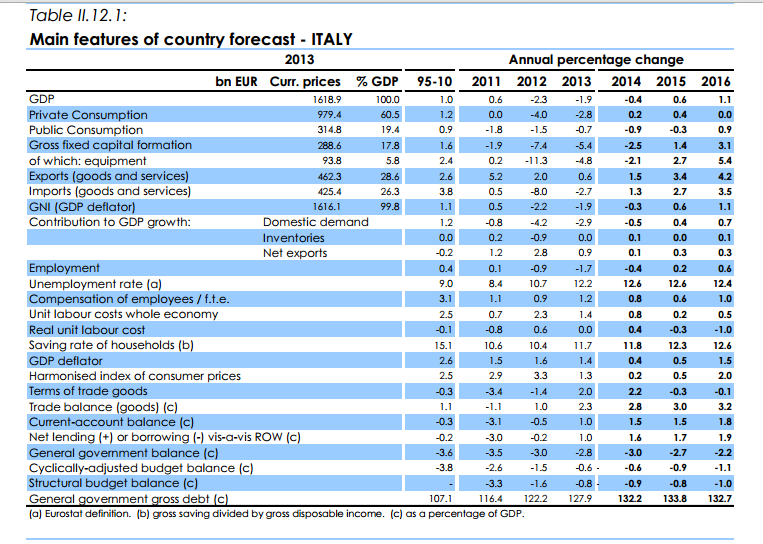 All’interno del documento che ci riguarda la Commissione Europea pone l’accento proprio su deficit e debito, mentre sul fronte crescita si prevede una "fragile ripresa"nel 2015.