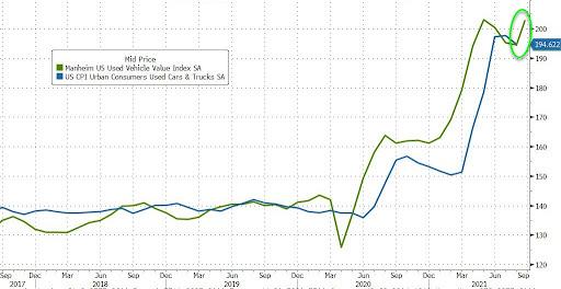 mostrano quale sia la vera ragione del timore che sta scuotendo i mercati, ovviamente sempre con un occhio al board della Fed: la Banca centrale statunitense sta davvero scherzando con il fuoco dell’inflazione, in caso la pantomima della transitorietà dovesse caratterizzarne le scelte di politica monetaria ancora per molto. Se infatti l’indice Zillow relativo al costo degli affitti ad agosto ha segnato un aumento a due cifre, confermando la presenza di una bolla immobiliare anche al di fuori del normale range di tracciatura dei prezzi di vendita delle case, ecco che a far paura è il ritorno all’aumento del prezzo delle auto usate, il vero driver del CPI statunitense negli ultimi due trimestri.