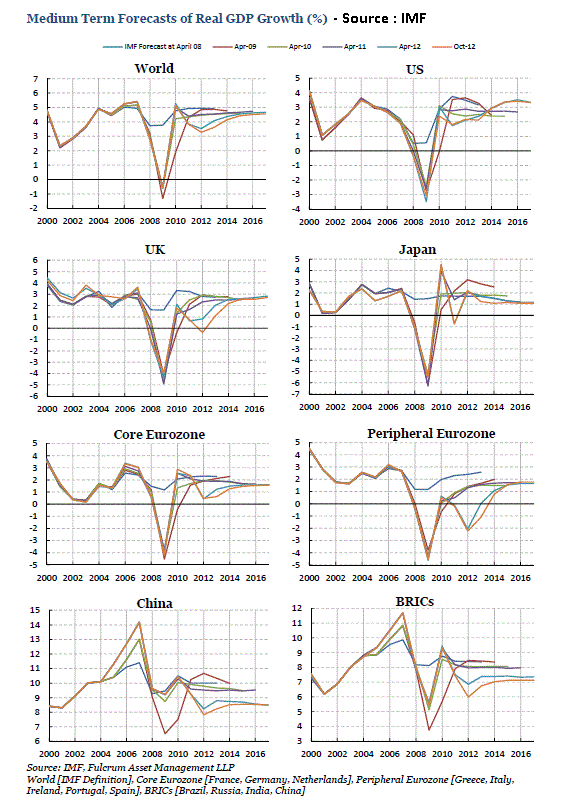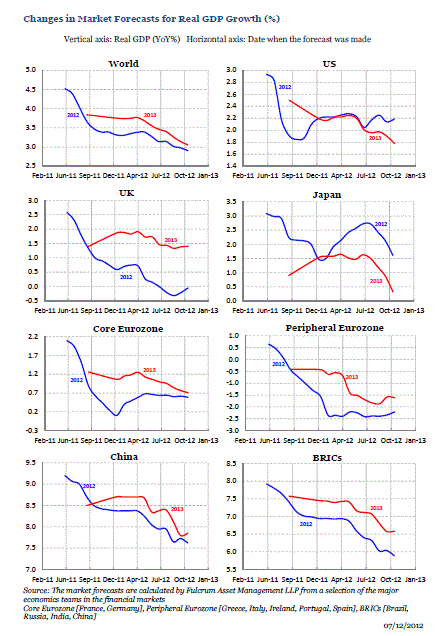 Negli ultimi 18 mesi le previsioni per il 2012 e quelle per il 2013 sono state riviste al ribasso e ridistribuite diverse volte. Dall’autunno del 2011, le previsioni per il PIL mondiale sono state ribassate di circa il 2% per il 2012 e per il 2013.