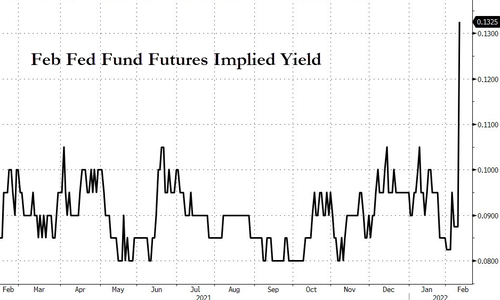 può apparire astruso. E lo è. E’ molto da addetti ai lavori ma parla chiaro. Esattamente come ha fatto il capo della Fed di St. Louis, James Bullard, dopo la pubblicazione del dato sull’inflazione: occorre arrivare a un punto pieno di rialzo entro luglio. E 50 in un solo colpo a marzo, quindi da comunicare al termine del board Fed del 16-17 del prossimo mese. Ecco la reazione. Immediatamente il contratto di febbraio dei Fed funds è salito di 13 punti base, di fatto un proxy relativo a una contrazione di 5 punti base rispetto al tasso effettivo attuale dello 0,08%.