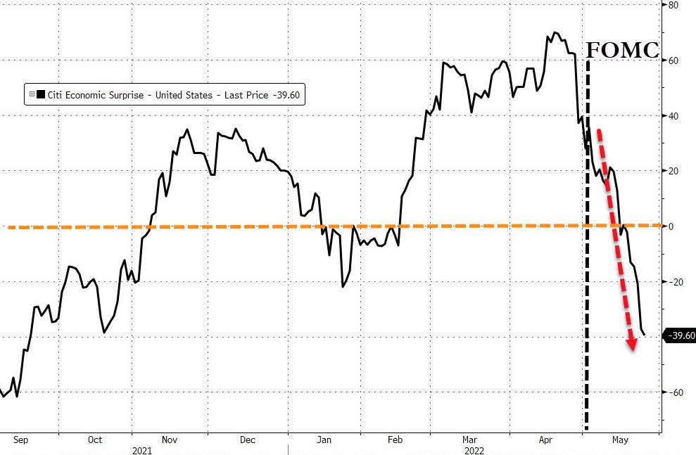 i quali mostrano nell’ordine il peggioramento del Citi Surprise Index relativo alle condizioni macro dell’economia Usa, la conseguente prezzatura dei futures rispetto a un più che probabile reverse verso nuovo allentamento e il livello estremo delle condizioni finanziarie sul mercato statunitense. Il tutto, giova sottolinearlo, in simile caduta libera solo dal board del 3-4 maggio scorso.