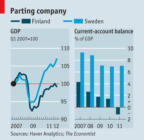Da un altro punto di vista, la performance della Finlandia può apparire deludente, soprattutto paragonandola a quella dei cugini svedesi, che non sono entrati nell’Euro.