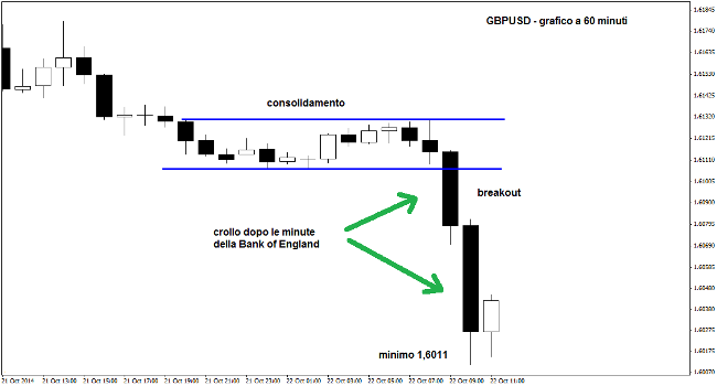 Dalle minute della BoE è emerso che due dei nove membri della Banca d’Inghilterra si sono detti contrari al mantenimento dei tassi allo 0,5%. Giù la sterlina in area 1,60$
