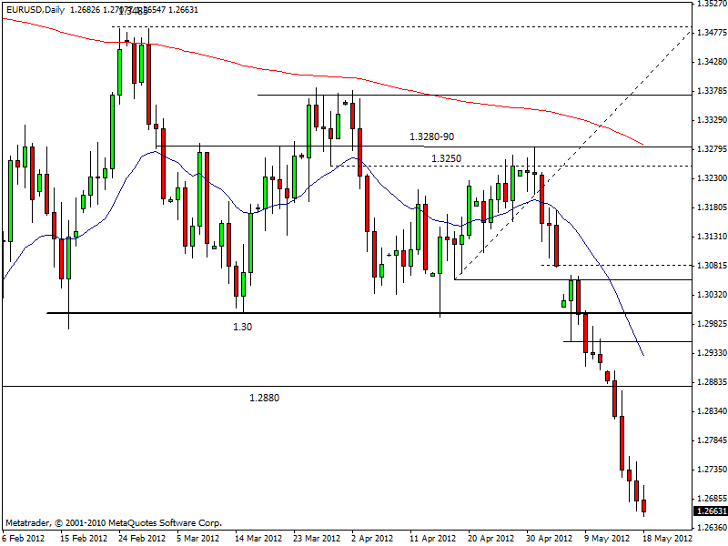 La crisi del vecchio continente sta diventando sempre più acuta e tra gli investitori di tutto il mondo si inizia a temere il peggio. Ora anche gli USA temono che possa avvenire un contagio oltre-oceano e ieri hanno dovuto prendere atto di un altro market mover nettamente sotto le attese (indice Fed Philadelphia). Ma per ora è l’Europa a far paura. L’agenzia di rating Fitch ha tagliato il rating della Grecia a CCC da B- e minaccia tutta la zona euro di downgrade a catena dopo le elezioni greche del 17 giugno. Altro capitolo della crisi è la Spagna: ieri corsa agli sportelli preoccupante con il titolo Bankia che è crollato del 30%. Moody’s ha tagliato il rating su regioni e banche. Lo spread Bonos-Bund oggi rischia di aggiornare nuovi massimi storici sopra 500. L’Italia trema.