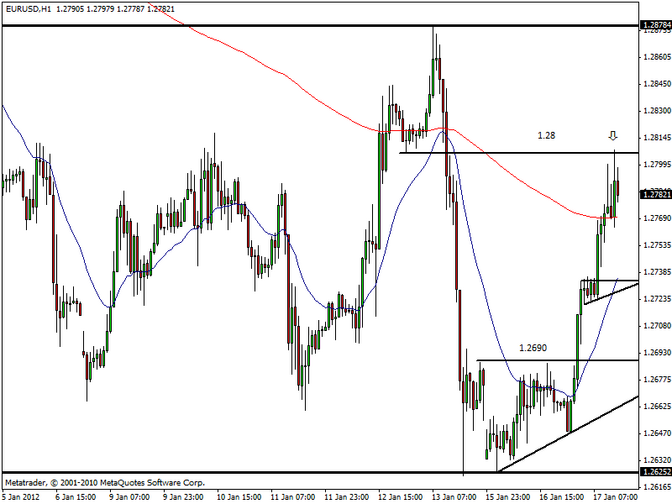 Sul Forex il tasso di cambio euro/dollaro ha toccato un top intraday a 1.2808, raggiungendo così un’importante resistenza di breve periodo. Al momento i prezzi sembrano aver bisogno di rifiatare dopo il rally rialzista molto forte partito nella sessione asiatica. Non è da escludere un ritorno a 1.2760-50 nelle prossime ore. Il cambio euro/yen, invece, si è spinto fino a 98.32, raggiungendo così la resistenza dinamica della EMA20 sul chart a 60 minuti. Probabile un ritracciamento a 98 prima e 97.80 poi. Sul Forex è molto tonico il cambio sterlina/dollaro che ha raggiunto 1.54. Tra le commodity l’oro resta sopra 1660$ l’oncia, mentre il petrolio Wti è stato respinto poco prima di toccare 101$ al barile.