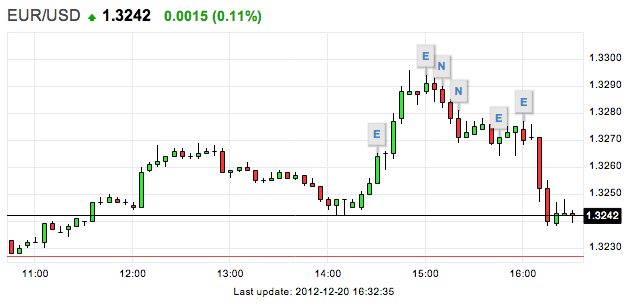 Sulla positività del dato USA, il cambio Euro/Dollaro è sceso in meno di mezz’ora da 1.3270 a 1.3240 attenuando, almeno momentaneamente, i timori relativi al fiscal cliff e spingendo il dollaro al rialzo.