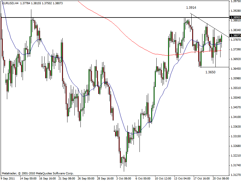 Improvviso breakout della volatilità sui mercati europei.Gli indici azionari continentali hanno messo il turbo spingendosi velocemente al rialzo con grandissima forza, tanto che il Dax30 sale quasi del 2% (dopo una lunga accumulazione nell’intraday) e l’indice milanese FTSEMIB del 2,2%, nonostante le tensioni sullo spread Btp/Bund che ha superato anche i 400 punti base. Sul Forex l’euro ha completamente invertito la rotta dopo le perdite accumulate in mattinata. Il cross EUR/USD, che aveva trovato un ottimo supporto in area 1.37, si è messo a correre senza freni ritornando sopra 1.38 e avvicinandosi al punto di breakout del triangolo formatosi sul grafico a 4 ore. I prezzi, se il trend rialzista emergente intraday non dovesse subire grosse variazioni, dovrebbero anche raggiungere area 1.39 – 1.3915 nelle prossime ore allontanando per un po’ lo spettro del ripristino del bearish trend di medio periodo che sembrava sempre più probabile dopo il crollo di questa mattina. Chiaramente è ancora presto per cantare vittoria, per cui l’euro dovrà assolutamente provare a consolidare i guadagni e a restare almeno sopra 1.3750 per tentare la fuga verso 1.39. Sul Forex anche EUR/JPY è in grande spolvero con i prezzi che al momento si sono fermati appena sotto 106. Tuttavia, in caso di breakout deciso di area 106, i prezzi dovrebbero spingersi almeno in area 106.50 e forse anche 106.80. Spettacolare breakout anche su GBP/USD che ha superato con forza la resistenza intraday di area 1.5820 spingendosi fino a 1.5916, mostrando un bullish trend davvero incredibile. Tra le commodity è in ripresa anche l’oro, che è tornato sopra 1630$ l’oncia, e l’argento nuovamente sopra 31$ l’oncia. Bene anche il petrolio Wti a 87$ al barile.