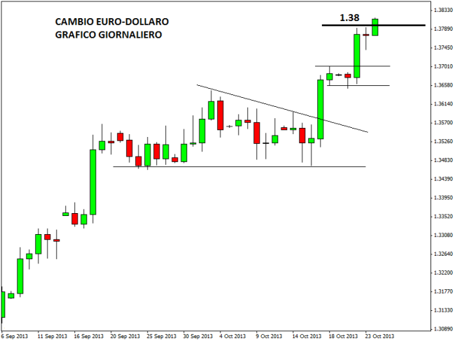 Il rally di euro-dollaro sembra non avere fine: superato anche quota 1,38 e il cambio torna sui livelli di novembre 2011