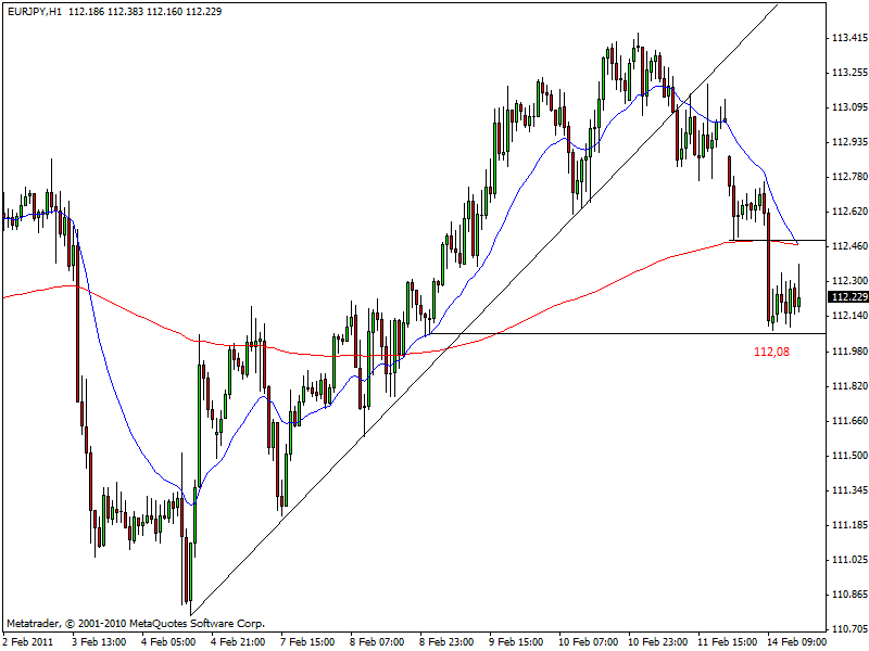 Giornata difficile per la divisa europea. Il cross rate euro/dollaro ha toccato un bottom intraday a 1,3427, il livello più bassa dallo scorso 21 gennaio. Il cambio resta sempre in un’area di supporto piuttosto vasta, anche se la sensazione è che si possa arrivare fino a 1,3350 – 1,33 nei prossimi giorni. In netto calo anche eur/chf, sceso fino in area 1,3050, ma anche euro/yen. Quest’ultimo mostrava già segni di negatività da alcuni giorni, quando i prezzi avevano rotto al ribasso la trendline rialzista di breve periodo sul grafico a 1h. Stamattina, poi, l’apertura in gap down ha evidenziato ulteriore negatività e alla fine è risultato decisivo il breakdown di 112,50. I prezzi si sono spinti fino a 112,08 per poi iniziare una fase di consolidamento. In return move in area 112,50 potrebbe essere una nuova opportunità short sul cambio che, però, dovrebbe accelerare soltanto in caso di breakdown di 112,08 – 112 con target iniziale in area 111,50. E domani ci saranno molti dati macro interessanti in Europa: riunione dell’Ecofin, Pil preliminare IV° trim. 2010 in Germania (stima flash anche per l’Eurozona), indice ZEW. Nel frattempo, Wall Street prosegue in frazionale calo (Dow Jones -0,15% circa).