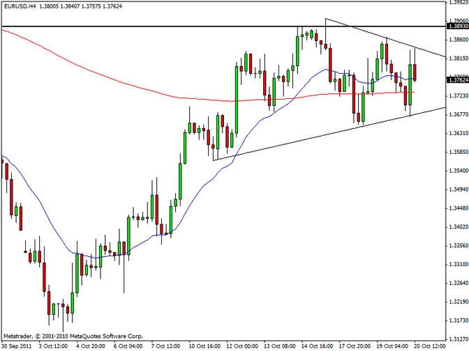 Borse europee negative in attesa dell’apertura di Wall Street. Gli investitori sono in attesa del summit del prossimo 23 ottobre, giornata conclusiva dei lavori all’Eurogruppo che prenderà il via domani. L’incertezza regna sovrana ma è probabile che possa tornare un sentiment fortemente negativo se i leader europei non dovessero trovare soluzioni condivise. Intanto, le richieste settimanali di sussidi per la disoccupazione si sono attestate a 403mila unità, praticamente in linea con le stime degli analisti (401mila). Il dato precedente, invece, è stato rivisto a 409mila unità da 404mila. Sul Forex l’euro/dollaro - in grande spolvero questa mattina con salita fino a 1.3840 da area 1.3670 – è in fase di ripiego in area 1.3750 e continua a muoversi all’interno di un ampio triangolo sul grafico a 4 ore. La sensazione è che siamo in una fase di distribuzione dei prezzi, per cui un ritorno deciso sotto 1.3670 prima e 1.3650 poi dovrebbe facilitare una discesa molto importante fino a 1.3550 – 1.35. Inizia a mostrare segnali di debolezza anche euro/yen che è tornato in area 105.70 dopo aver sfiorato stamattina quota 106.30. Sul Forex gli acquisti si stanno concentrando molto sul dollaro americano, che è salito con forza anche contro lo yen sopra 77. In mattinata bene il cable dopo il buon dato sulle vendite al dettaglio nel Regno Unito, ma nelle ultime ore i prezzi sono tornati a scendere fino in area 1.5750 dopo che la resistenza posta poco sotto 1.58 aveva bloccato l’ascesa delle quotazioni. Tra le materie prime continua a perdere quota l’oro, sceso fino a 1607$/oz. Il metallo giallo dovrebbe proseguire la discesa almeno fino a 1600$ e forse anche fino a1580$ se il sentiment dovesse velocemente peggiorare.