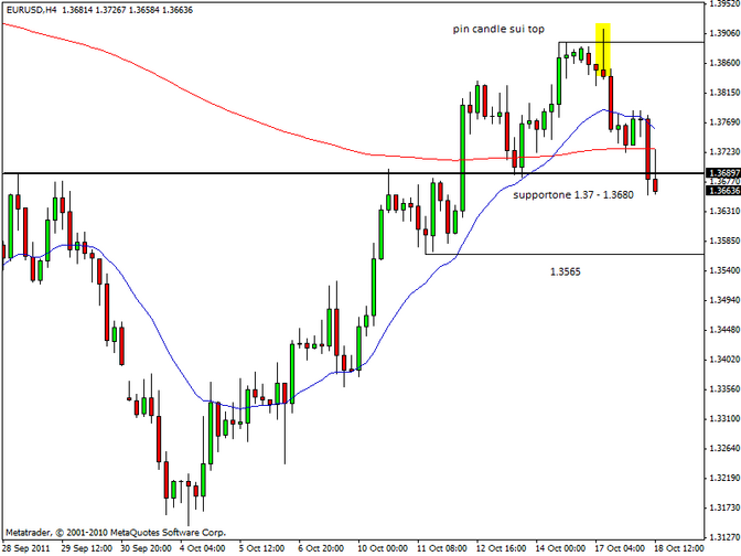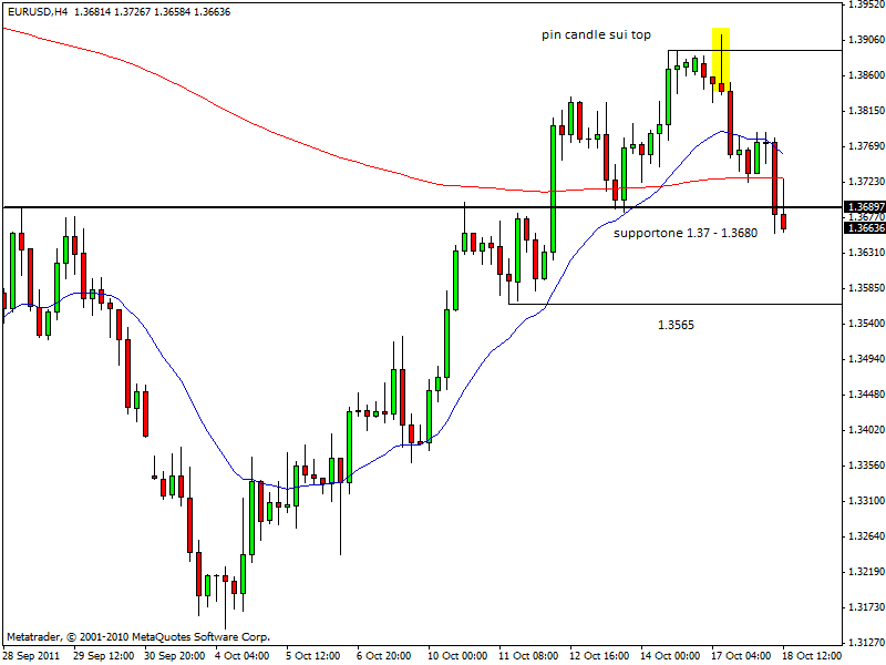 Wall Street ha aperto in calo in scìa all’andamento delle borse europee, che hanno comunque provato a rimbalzare nelle ultime ore. Tuttavia, il sentiment negativo sembra poter continuare a dominare la seduta soprattutto dopo la trimestrale di Goldman Sachs che ha evidenziato una perdita peggiore di quella preventivata dagli analisti. Sul Forex il cross euro/dollaro, respinto poco sotto 1.3730, cioè sui livelli della Ema200 a 4 ore (ex supporto ora resistenza dinamica), è tornato a scendere con convizione e ormai non siamo poi così lontani dal test dei bottom intraday. In caso di perdita definitiva di area 1.3650, la discesa delle quotazioni potrebbe subire una forte accelerazione con target a 1.3550 prima e 1.35 poi. Anche euro/yen è tornato a scendere con decisione ed è molto vicino ai minimi di giornata posti poco sotto 104.80. Qui il target di questa discesa dovrebbe essere 104. Sul Forex non si ferma il trend ribassista della sterlina, che comunque aveva mostrato un buon recupero dai minimi intraday tornando in area 1.5750 contro dollaro. Il cable ha accelerato nuovamente al ribasso dopo l’apertura di Wall Street fin sotto 1.5670. Siamo ormai su una zona di supporto molto importante nel breve periodo: in caso di breakout ribassista anche di 1.5660-50, i prezzi dovrebbero spingersi fino a 1.5550 tra oggi e domani. Il clima di avversione per il rischio ha decretato anche un deciso calo per le quotazioni dell’oro, ormai considerato dagli investitori un asset speculativo dopo il raggiungimento di livelli effettivamente esagerati (quasi 2.000 dollari l’oncia). Il metallo giallo è sceso sotto 1630$/oz e il prossimo obiettivo dovrebbe essere il ritorno in area 1600$/oz. Pesante discesa anche per l’argento che è sceso fin sotto 30.5$ l’oncia. Tra le commodity tiene leggermente meglio il petrolio Wti, ma c’è il rischio che le quotazioni possano subire una brusca accelerazione al ribasso in caso di perdita del supporto di area 85.5$ al barile: in questo caso ci si potrebbe aspettare un ritorno a 84.5$/bl prima e 83$/bl poi.