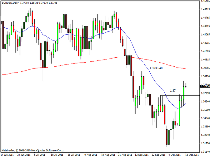 Resta elevato l’appetito per il rischio sui mercati finanziari. Le borse europee hanno chiuso in forte rialzo, mentre a Wall Street il Dow Jones ha registrato un progresso dello 0,9%. Le aspettative degli investitori per una soluzione positiva della crisi del debito sovrano in Europa stanno letteralmente mettendo le ali agli asset più rischiosi. Non solo l’azionario è in forte rialzo, ma anche le commodity e le valute più speculative come l’euro. Sul Forex il cross euro/dollaro si è spinto ieri fino a 1.3833 mostrando ancora una volta una grande forza. I prezzi, a seguito del breakout di 1.37, hanno conosciuto un fortissimo bullish trend che ha portato il cambio sul primo target di 1.38. La forza mostrata ieri fa pensare a un proseguimento della tendenza rialzista, magari dopo una breve fase di consolidamento, con la possibilità di raggiungere il target di area 1.3940. In caso di prese di profitto importanti nelle prossime ore, è possibile che i prezzi ritornino in area 1.37 per un test dell’ex resistenza, ora supporto. Considerando la forza attuale del bullish trend, è probabile che area 1.37 diventi facilmente un’area di acquisto molto appetibile agli investitori. Sul Forex ieri abbiamo assistito anche a grandi acquisti sul cambio euro/yen, che metteva a confronto la valuta più acquistata del momento e quella più venduta. Il risultato è stato chiaramente quello di un cambio in forte rialzo fin sopra 107. Ora è in corso un pullback con i prezzi che sembrano aver già trovato un buon punto d’appoggio per ripartire in area 106.10. Ora un ritorno deciso sopra 106.50 dovrebbe calamitare nuovamente l’attenzione dei compratori per un target a 107.25 prima e 108 poi. Di converso, la perdita decisa del supporto di breve periodo di 106.10 faciliterebbe la discesa in area 105.50. In questo caso è probabile una discesa generalizzata anche degli indici azionari europei, che comunque hanno corso molto negli ultimi giorni senza effettuare grandi pause. Per quanto riguarda, invece, sterlina/dollaro, i prezzi hanno raggiunto ieri area 1.58 ma nelle ultime ore è partito un pullback fin sotto 1.5730. Anche qui siamo su interessanti supporti di breve periodo che potrebbero facilitare la risalita del cable nuovamente verso 1.58.