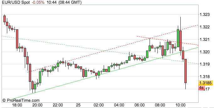 Di conseguenza il trading sul cambio Euro/Dollaro è stato piuttosto interessato a questa pubblicazione, infatti, se al momento della pubblicazione si è arrivati a toccare un massimo a 1.3237, più tardi ha iniziato a subire la forza ribassista che lo ha spinto ad un minimo su 1.3180 mentre in questi minuti gli scambi avvengono al di sotto della linea 1.3190.