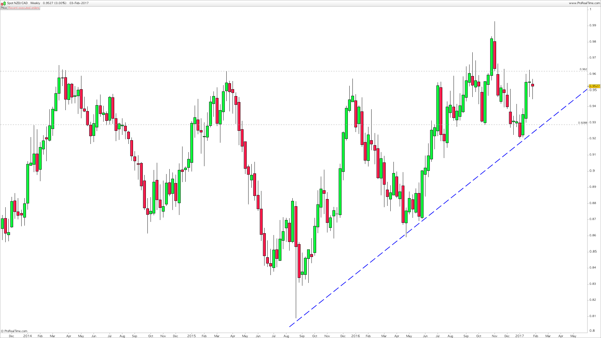 Di seguito un’analisi tecnica su timeframe settimanale del cross valutario NZD/CAD (dollaro neozelandese contro dollaro canadese).