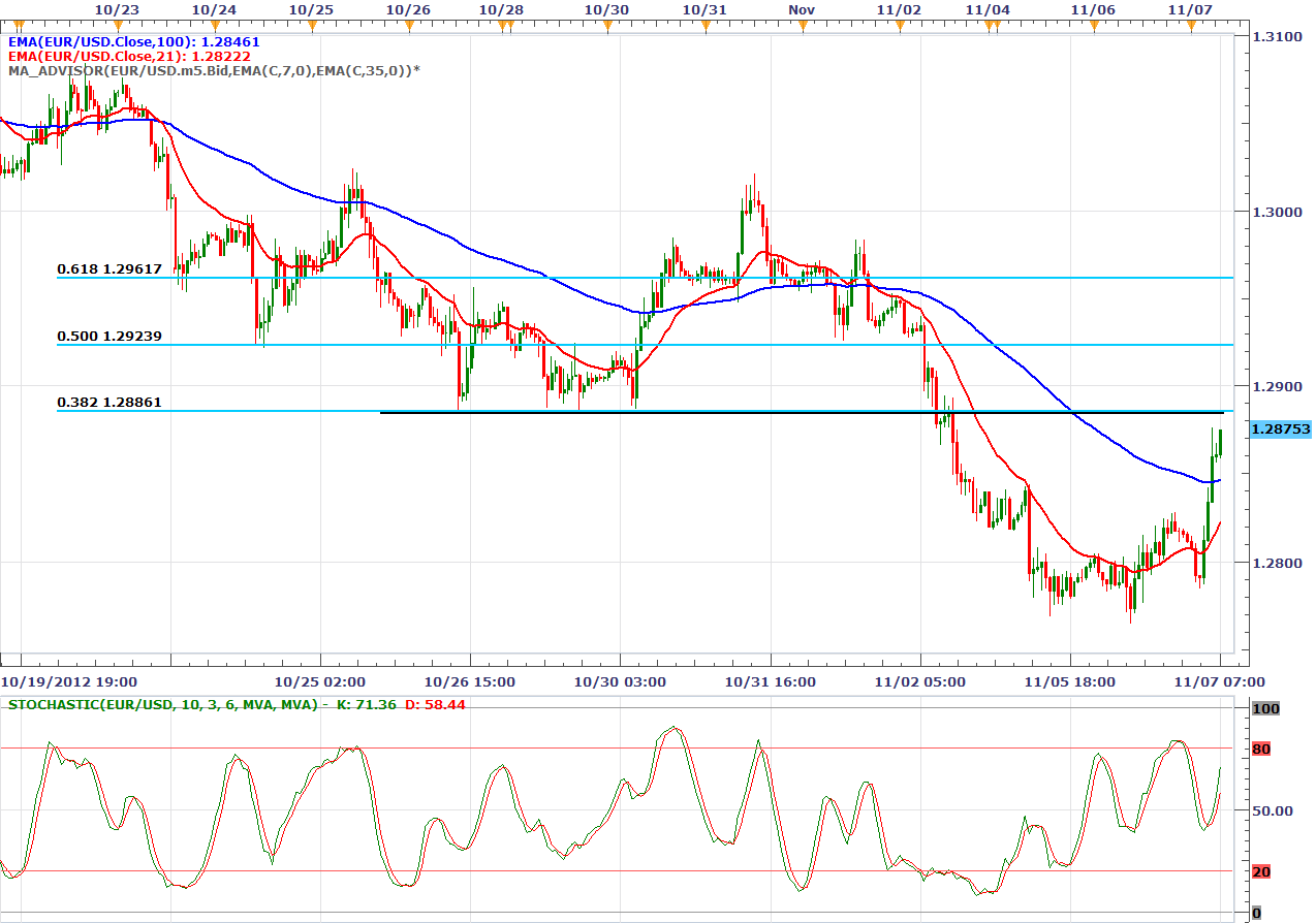 Il forte rimbalzo dell’oro, cominciato ieri nel tardo pomeriggio e continuato dopo la rielezione di Barack Obama, ha riportato i prezzi esattamente al livello di partenza pre-sciacquone, cui abbiamo assistito venerdì, dopo i dati sull’occupazione americana (reazione strana, se vi ricordate l’abbiamo commentata). Ritorna dunque d’attualità il livello di resistenza che passa intorno a 1,730.00 e che se superato può portare a salite oltre 1,740.00, mentre per assistere a discese importanti dobbiamo tornare sotto 1,718.00 (buon livello di target in caso di vendita di oro sulle resistenze con stop e reverse). Se lo oltrepassiamo, si torna verso 1,700.00.