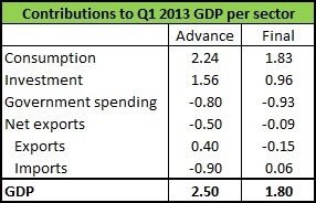 Guardando la tabella, possiamo vedere che ogni componente ha effettivamente contribuito alla revisione al ribasso del Pil.