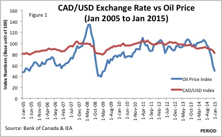 Nel corso degli ultimi sei mesi, il valore del dollaro canadese nel mercato forex (in gergo loonie) è diminuito di circa il 12% rispetto al valore del dollaro USA. Allo stesso tempo, il prezzo del petrolio è sceso di circa il 48%.