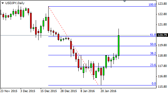 Il prezzo della major dollaro-yen, grazie all’impennata di queste ore, ha oltrepassato i livelli del ritracciamento di Fibonacci situati a quota 119.75 e 120.74. Quest’ultimo sarà un livello chiave e il modo in cui la candela giornaliera si chiuderà sarà essenziale: la sua rottura potrà dare luogo a una continuazione degli acquisti, mentre un rimbalzo sotto tale resistenza potrebbe far ripiegare la quotazione verso il supporto del 50% di Fibonacci.