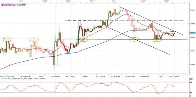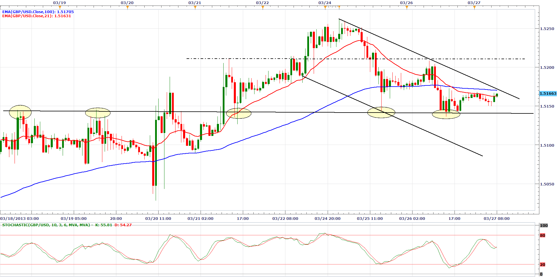 Concludiamo con il dollaro australiano, sperando di non avervi fatti addormentare data la lunghezza non consona di questo pezzo di aggiornamento giornaliero. I fatti accaduti a Cipro e sui mercati sembrano non aver interessato le commodity currencies, con il dollaro canadese e quello australiano che sono stati ben acquistati, così come il petrolio, al quale sono ultimamente correlati in maniera positiva su una base abbastanza costante. Ci troviamo ora in correzione e vediamo in tutta l’area compresa tra 1.0480 e 1.0500 delle forti resistenze. Quest’area può essere sfruttata per prendere posizionamento a favore del dollaro americano, con potenziali target in area 1.0430 in caso di superamento a ribasso di 1.0460. Se dovessimo invece assistere ad un superamento di 1.0500, attenzione a tutti i venti punti successivi, che solo se superati possono determinare aumenti degli acquisti e quindi un movimento più forte a rialzo, verso 1.0560.