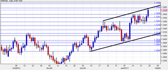 La scorsa settimana, i dati PMI dalla zona Euro hanno fornito un quadro complesso in cui la Germania sembra aver ripreso il passo, inoltre, la notizia del rimborso delle LTRO alla BCE è stato ulteriore segno di ottimismo. Negli Stati Uniti, le richieste per i sussidi di disoccupazione hanno raggiunto un minimo di 5 anni, ma sembrerebbe che il settore immobiliare stia perdendo la sua forza. Il cambio Euro/Dollaro riuscirà a rompere qualche resistenza critica?