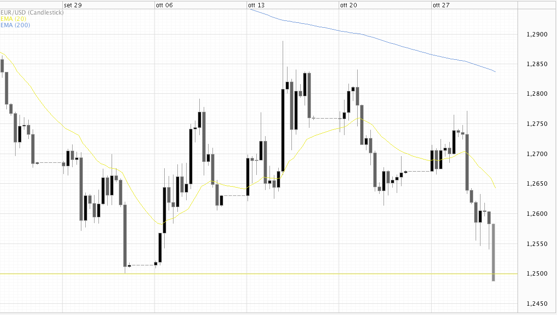 Il cambio Euro Dollaro rompe il supporto in area 1.25 e aggiorna i nuovi minimi a 2 anni