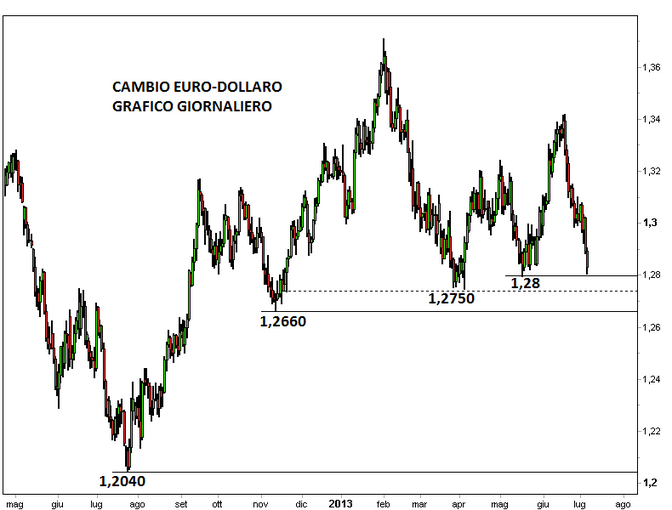 Home > Altro > Archivio > Forex: cambio euro-dollaro al test del supporto di 1,28