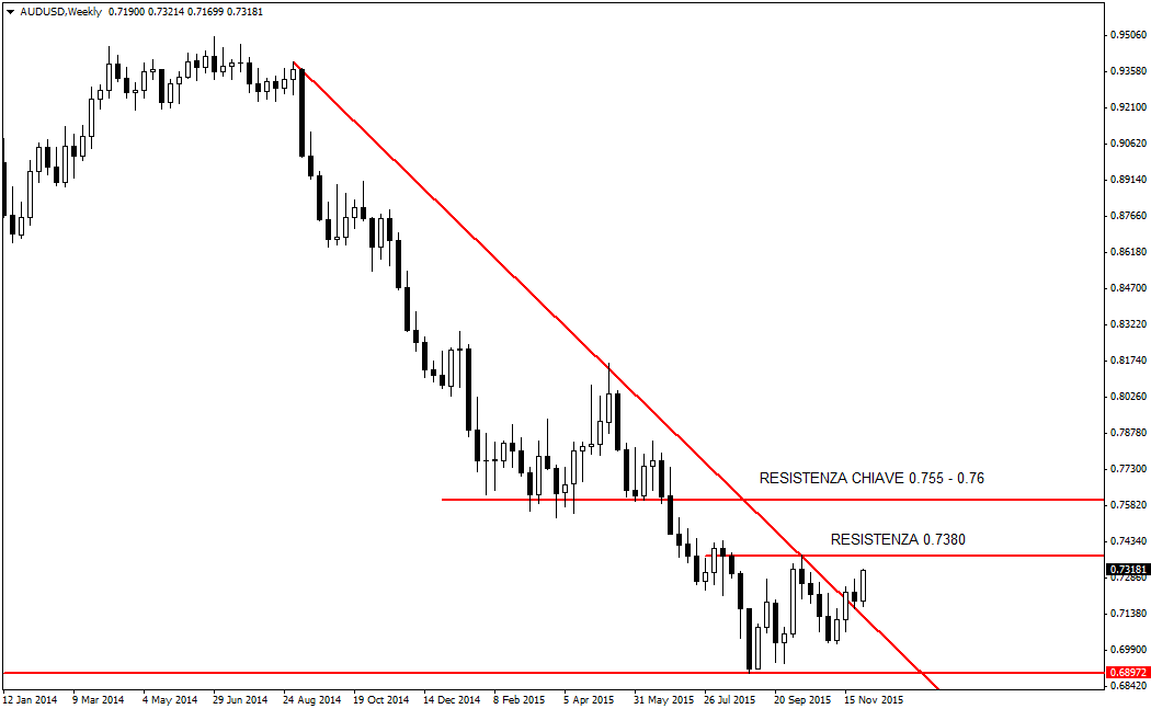 Tra l’altro la moneta di Sidney si sta rafforzando molto nei confronti di una serie di valute, facendo presagire un deciso cambio di rotta nelle scelte degli investitori. Il cross EUR/AUD è sceso sotto 1,45, sui minimi a 5 mesi, mentre il cross AUD/JPY è volato in area 90 ai top da fine agosto. Il cambio AUD/USD, ovvero quello più seguito e commerciato dai forex trader, potrebbe spingersi subito fino alla resistenza di 0,7380, per poi tentare l’assalto decisivo fino alla successiva area chiave posta tra 0,7550 e 0,76.