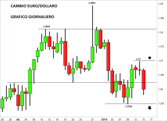 Il tasso di cambio euro/dollaro è sceso in area 1,3580, anche se poi è riuscito a chiudere intorno a 1,36. Ora è in corso un pullback in area 1,3620, ma se il cambio dovesse mostrare ancora una certa debolezza è probabile la rottura ribassista di 1,3580 con primo approdo sul supporto di 1,3550. Il cambio potrebbe migliorare sensibilmente il quadro tecnico solo in caso di breakout deciso di 1,37. Il biglietto verde ha beneficiato ieri di due dati macro molto positivi. L’indice dei prezzi alla produzione è aumentato dello 0,4% a dicembre dopo il -0,1% del mese precedente. Gli analisti si aspettavano un miglioramento a +0,3% su base mensile. Il dato alla fine è stato il migliore degli ultimi 6 mesi.