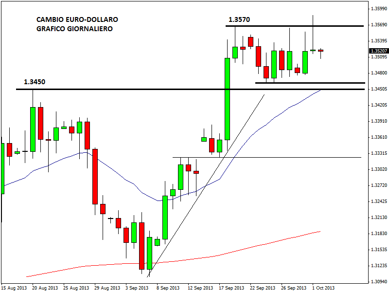 Ieri è stata una giornata favorevole al dollaro americano, che pure aveva iniziato male la seduta. Sullo sfondo resta lo shutdown negli Stati Uniti, che ha portato al blocco delle attività delle amministrazioni federali, anche se gli investitori ritengono che a breve repubblicani e democratici possano trovare l’accordo sulla legge di bilancio e preoccuparsi della prossima scadenza fondamentale del 17 ottobre, ovvero l’innalzamento al tetto del debito pubblico che negli USA ha già superato i 16.700 miliardi di dollari. Sul forex, però,il biglietto verde ha chiuso bene la giornata di ieri grazie al buon dato dell’indice ISM manifatturiero.