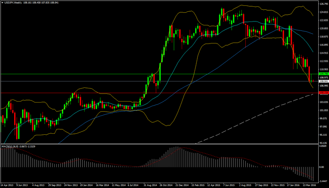 Con il seguente grafico settimanale, vediamo come USD/JPY sembra che si stia dirigendo verso la media mobile a 200 periodi: