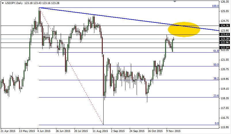 Il cambio dollaro-yen risentirà nel pomeriggio della lunga serie di dati macroeconomici ed è possibile che un’importante volatilità ne rallenti la corsa, oppure che la velocizzi. In ogni caso stiamo assistendo ad un trend fortemente positivo che potrebbe arrivare nei prossimi giorni ad impattare contro la resistenza dinamica che collega i massimi del 2015 di giugno e agosto.