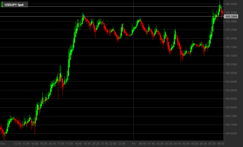 L’evento principale di giovedì nel mercato del Forex è stata la rottura al rialzo del cambio dollaro-yen sopra quota 105.