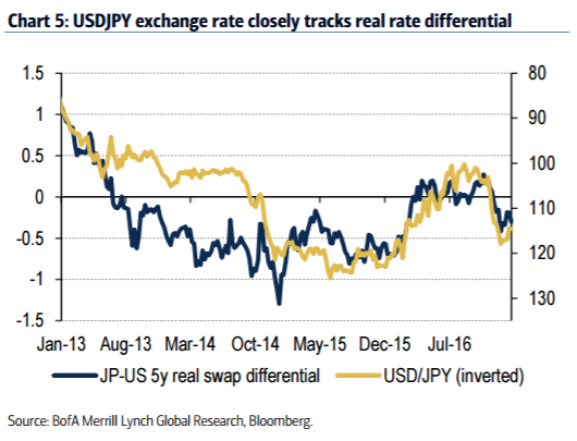 La BofA Merril Lynch ha consigliato il buy sul cambio dollaro-yen all’inizio di questa settimana con target quota 120.