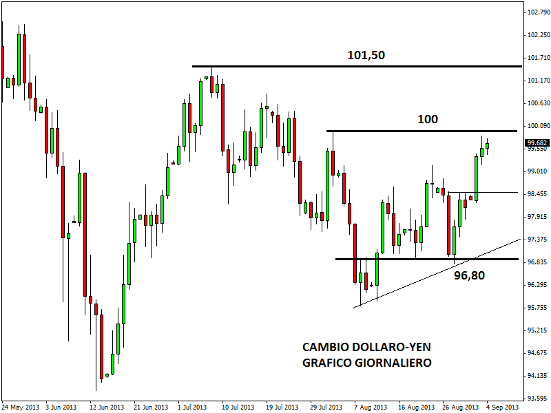 Sul forex il tasso di cambio dollaro-yen quota in area 99,70, ma sembra sempre più avviato a riconquistare quota 100. In caso di breakout esplosivo di 100, il cross potrebbe accelerare con decisione fino a spingersi in area 100,70 prima e 101,50 poi. In rialzo troviamo anche il cambio euro-yen, che quota in area 131,30 e sembra pronto per il breakout della resistenza di 131,50.