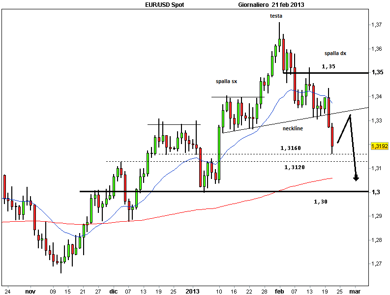Nella giornata di ieri, complice i timori sulle scelte di politica monetaria della Fed e i deludenti dati degli indici Pmi europei, la moneta unica è rimasta sotto pressione per l’intero arco della seduta continuando a perdere valore nei confronti di dollaro, yen, franco svizzero e sterlina. La debolezza dell’euro riflette anche il forte calo delle borse continentali, che ieri hanno vissuto una giornata di passione (in particolare Piazza Affari, che ha perso più del 3%). In crescita gli spread sovrani, che risentono dell’incertezza elettorale per le elezioni politiche italiane del 24 e 25 febbraio.