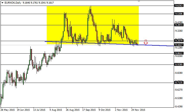 Con il prezzo del petrolio ancora intorno ai 40 $ al barile viene a mancare una spinta rialzista importante per la risalita della corona, ma questa potrebbe venire invece dal fronte dell’Eurozona: l’immissione di liquidità da parte della BCE e il possibile passaggio al QE 2 potranno dare al cambio EUR/NOK l’input ribassista che l’analisi tecnica attende.