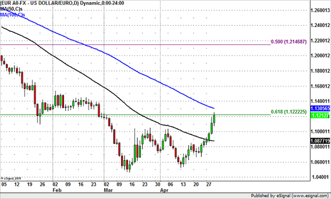 Il movimento ha preso velocità con il salto degli stop al di sopra del massimo di marzo a quota 1,1052.
