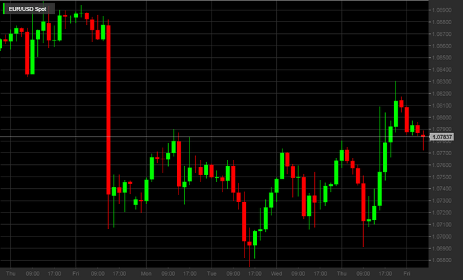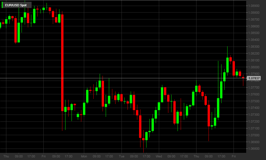 Da quel momento il cambio ha invertito rotta iniziando un rialzo culminato nel massimo intraday e weekly di 1,0830$.