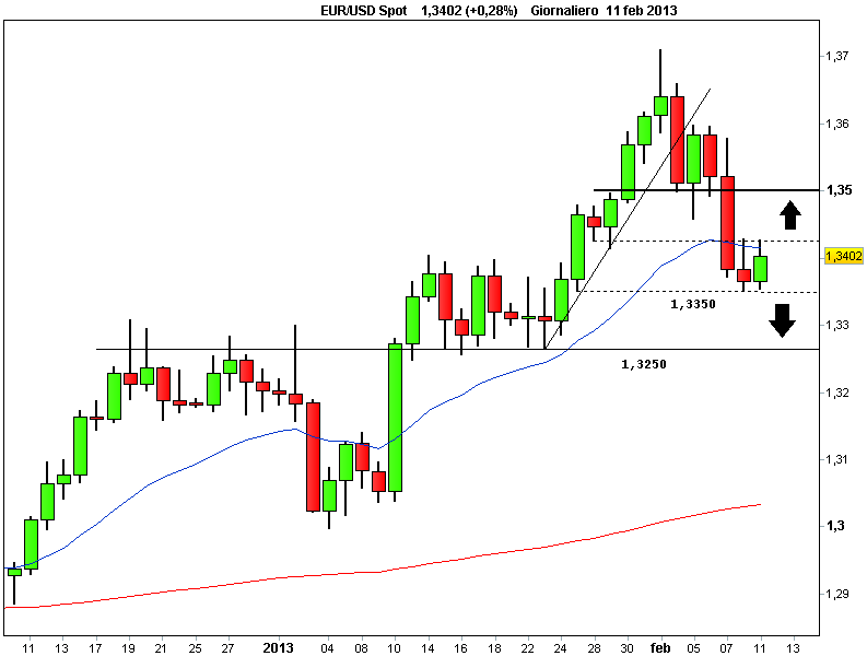 Il tasso di cambio euro/dollaro sta evidenziando un andamento laterale nel brevissimo periodo. I prezzi stanno oscillando all’interno di un trading range compreso tra 1,3430 e 1,3350. In attesa dell’inizio della riunione dell’Ecofin, previsto per le ore 9, il cambio euro/dollaro quota attualmente a 1,3385. In caso di breakout rialzista di 1,3430, i prezzi dovrebbero salire fino a toccare la key-area di 1,35; di converso, in caso di discesa decisa sotto 1,3350, il prossimo target è da identificare sull’area di supporto giornaliera di 1,3250.