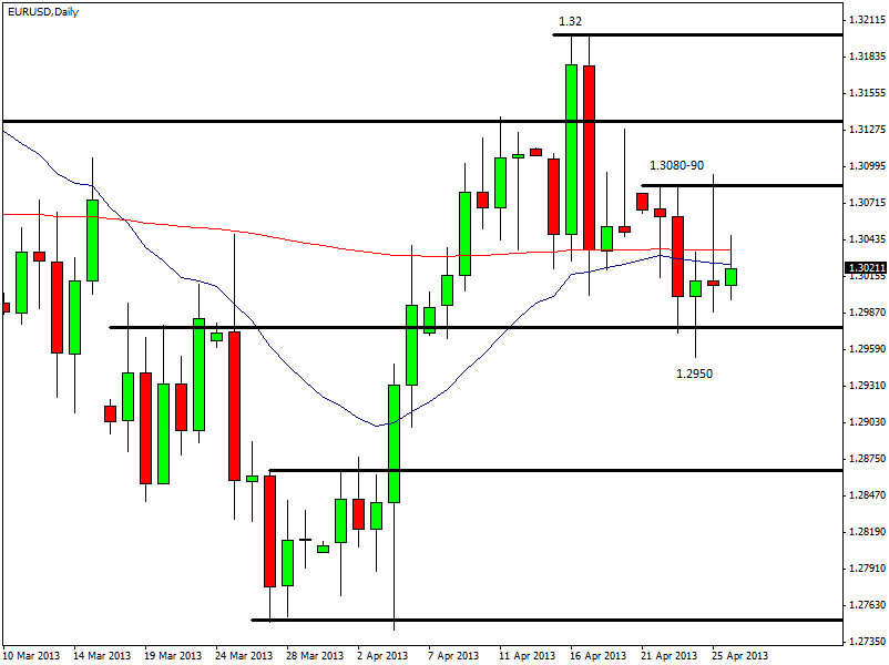 Sul forex c’è molta incertezza sul tasso di cambio euro/dollaro, ovvero la coppia valutaria che attira circa il 25% delle transazioni giornaliere sui mercati internazionali delle valute estere. I prezzi si stanno muovendo in modo piuttosto contrastato da qualche giorno, tra l’area di resistenza posta a 1,3085 - 1,3090 e l’area di supporto di 1,2950. La fase laterale potrebbe risolversi la prossima settimana con un breakout esplosivo dei prezzi e l’inizio di un movimento direzionale, dopo la decisione della Bce sui tassi nel meeting del 2 maggio.