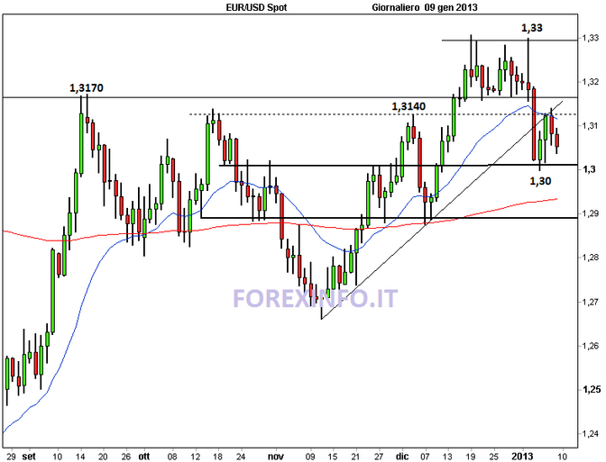Il sentiment sui mercati è positivo e solitamente in un contesto del genere l’euro tende ad apprezzarsi. Tuttavia, i rumors che vogliono la Fed pronta a interrompere (o quantomeno a ridurre) il piano di acquisto di bond entro fine anno stanno riportando in auge il dollaro americano, anche se potrebbe essere un movimento di breve durata. Più tardi, alle 14,30, ci sarà anche la conferenza stampa di Mario Draghi.