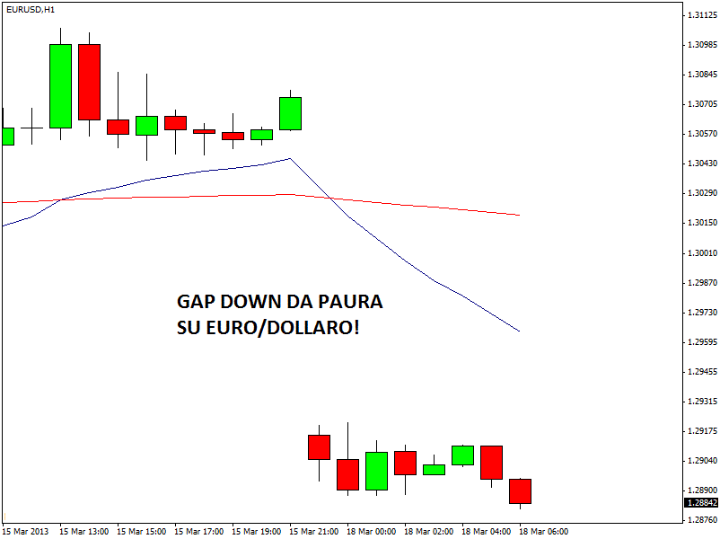 Il tasso di cambio euro/dollaro ha iniziato la nuova ottava con un gap down superiore all’1,2%, scendendo ffin sotto 1,29. Venerdì i prezzi si erano spinto fino alla resistenza di 1,31, ma stamattina c’è stato un forte gap che ha spinto velocemente i prezzi fin sotto 1,29. Il cambio euro/dollaro ha toccato il minimo più basso da oltre tre mesi a 1,2880. Profondo rosso anche per euro/yen a 121,60 (venerdì era a 124,50), euro/sterlina a 0,8530 ed euro/franco svizzzero a 1,2170.