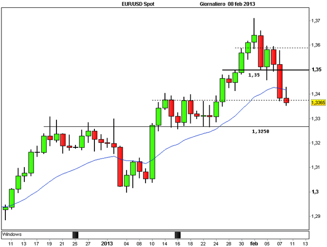 Il tasso di cambio euro/dollaro ha iniziato la nuova ottava con grandi difficoltà, complice l’indebolimento del quadro tecnico di breve periodo e il dato negativo della produzione industriale francese, anche se il risultato è stato leggermente superiore alle stime di consenso. Il cambio euro/dollaro è sceso venerdì sui minimi più bassi delle ultime due settimane in area 1,3350, mentre stamattina la quotazione è a 1,3370.