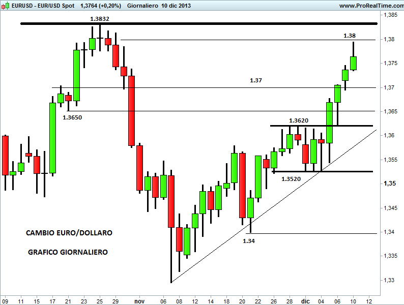 Il cambio euro/dollaro continua a salire con decisione, superando anche la resistenza chiave di 1,37 nonostante il tapering sia ora più vicino dopo i dati sul lavoro USA