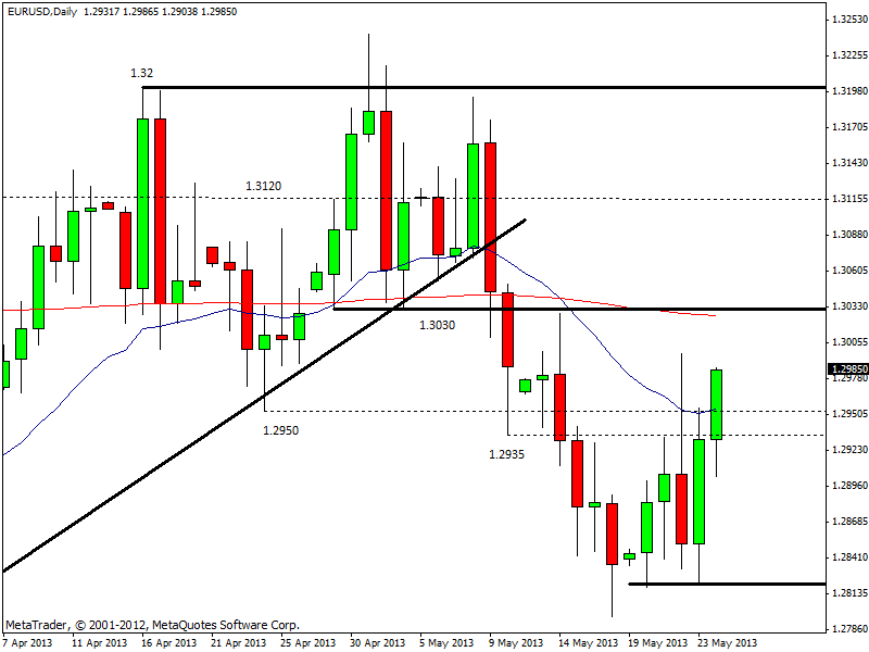L’indice Ifo tedesco business climate di maggio è aumentato a 105,7 punti dai 104,4 punti di aprile. Gli analisti finanziari si aspettavano un risultato invariato. Il dato superiore alle attese ha messo le ali alla moneta unica, che sul forex è decisamente tonica nei confronti del biglietto verde. Il tasso di cambio euro/dollaro è riuscito a superare la resistenza di 1,2950 ed ora sembra proiettato verso quota 1,30, sfiorata due giorni fa con l’inizio del discorso di Bernanke al Congresso Usa.
