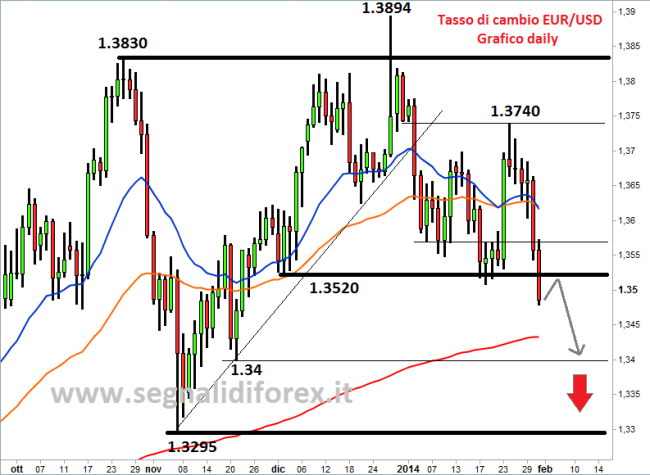 Si parla poi della possibilità che la BCE inizi a comprare direttamente asset sul mercato, ma questo scenario viene al momento ritenuto poco probabile per la forte resistenza a simili misure ultra-espansive da parte dei “falchi” dell’Eurotower, in particolare i membri tedeschi del Consiglio Direttivo. Nel frattempo sul forex l’euro continua a perdere valore, anche a causa delle vendite importanti scattate sui titoli di stato e sulle borse dell’eurozona. Il tasso di cambio euro/dollaro è ai minimi da oltre due mesi sotto 1,35 e nei prossimi giorni potrebbe scendere anche fino a 1,34. Forti cali si riscontrano anche sul cross euro/yen, che è sceso a 137,50 ai minimi da fine novembre scorso.