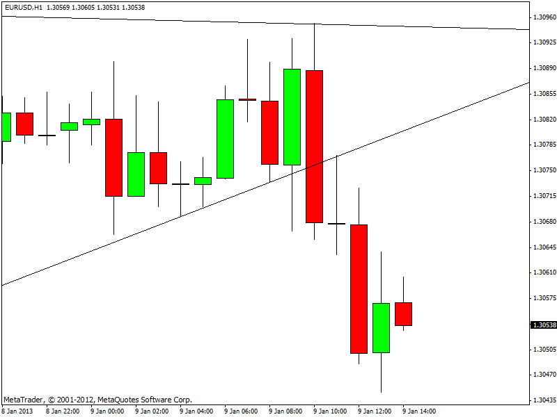 Il dato negativo ha influenzato l’asta dei Bund a 5 anni: il rendimento è salito allo 0,5% dallo 0,41% dell’asta di novembre 2012. Il Tesoro tedesco ha emesso 4,1 miliardi di euro di titoli di stato con scadenza quinquennale. La domanda è stata pari a 1,8 volte l’offerta. Sul forex l’euro ha reagito male ai market mover tedeschi e sta perdendo quota contro le major currencies. Il tasso di cambio euro/dollaro è sceso fin sotto 1,3050 e ora sembra dirigersi verso 1,30 in attesa della decisione sui tassi di domani da parte della Bce.