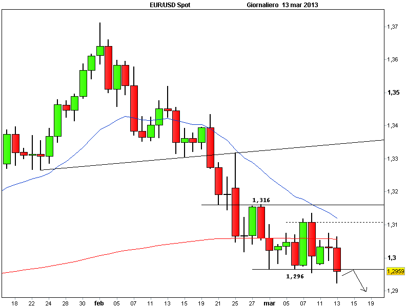 Il tasso di cambio euro/dollaro, che in mattinata era già salito fino in area 1,2980, potrebbe tentare un nuovo assalto all’area di resistenza di 1,2980 - 1,30. In caso di esito negativo, potrebbe iniziare velocemente una discesa verso 1,2920 prima e 1,2880 poi. Stamattina è in forte rialzo il cambio euro/yen, tornato sopra 125, mentre il cambio euro/sterlina è in area 0,8670.
